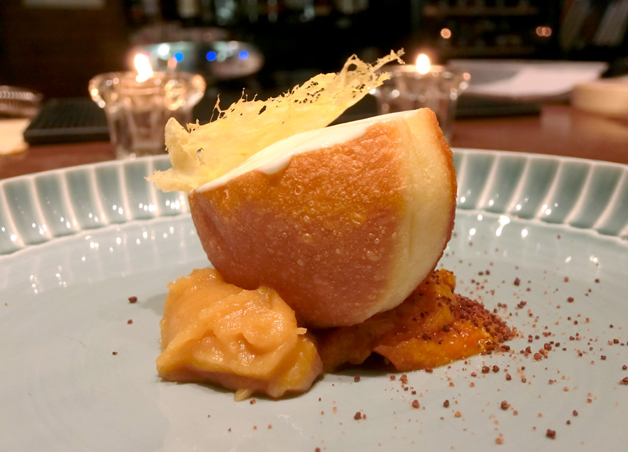 Ghostface Keller - Doughnut, Reblochon cream, papaya, apple tatin, cocoa nibs